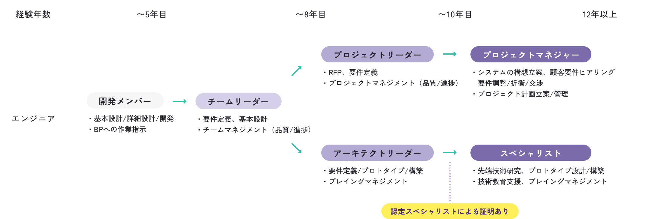 未経験からリーダ職、マネジメント職まで、それぞれが目指す理想のキャリアに