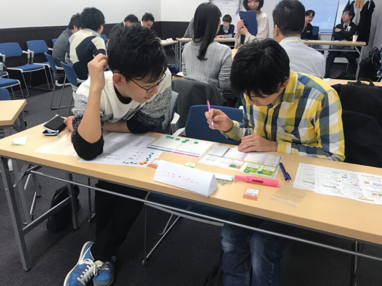 今年のワークは、2名でチームを組み、1つの企業として自社製品を販売。
