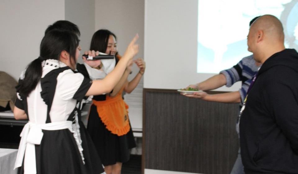 研修後の忘年会にて、商品の贈呈や罰ゲームを実施。