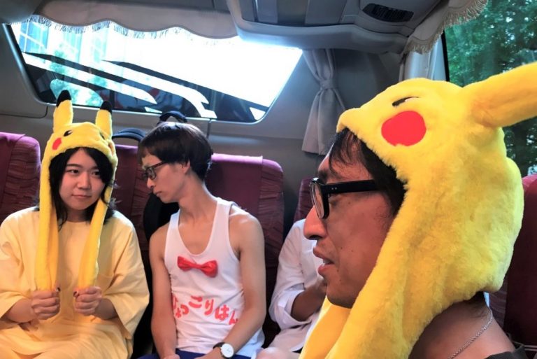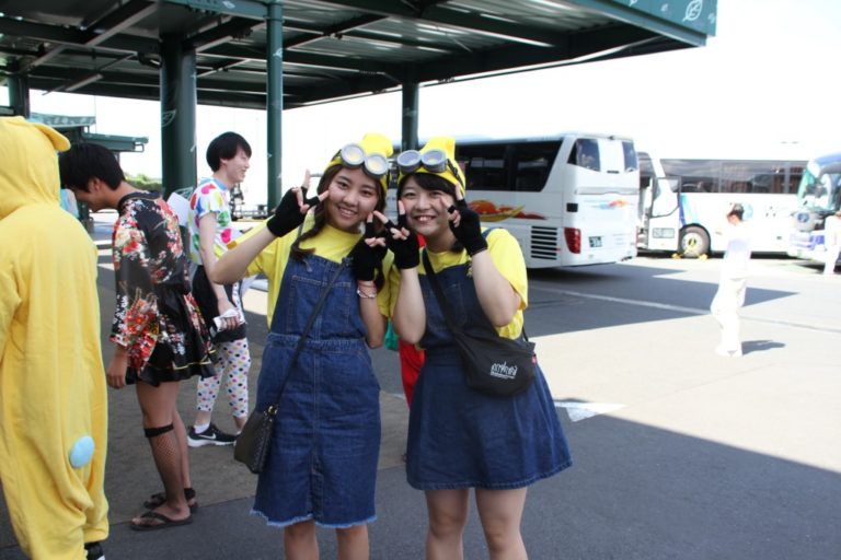 移動はバスをチャーター。そのうち1台だけは仮装した人だけが乗れる仮装バス。
